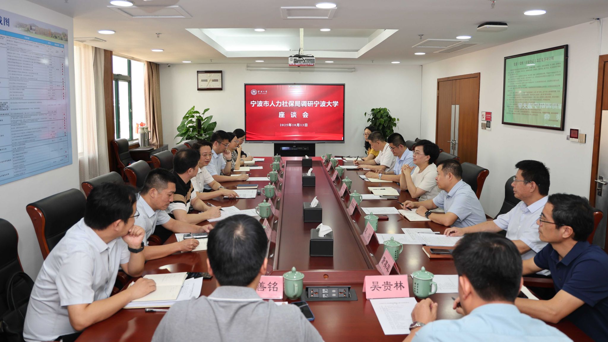 座谈交流环节,学校相关职能部门和市人社局各业务处室负责人就人事人才等有关工作进行了深入交流,进一步加强了校地双方在人事人才领域的沟通协作,为后续政策对接和制度创新奠定了坚实基础。
